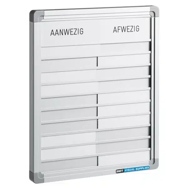 Dit presentiebord biedt een eenvoudige, maar effectieve manier om jouw BHV-team te beheren. Het vermogen om snel te zien wie er beschikbaar is in geval van nood kan de reactietijd aanzienlijk verkorten en zorgt voor een veiligere werkomgeving. Kies voor duidelijkheid en veiligheid met het BHV Presentiebord.